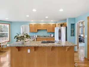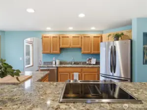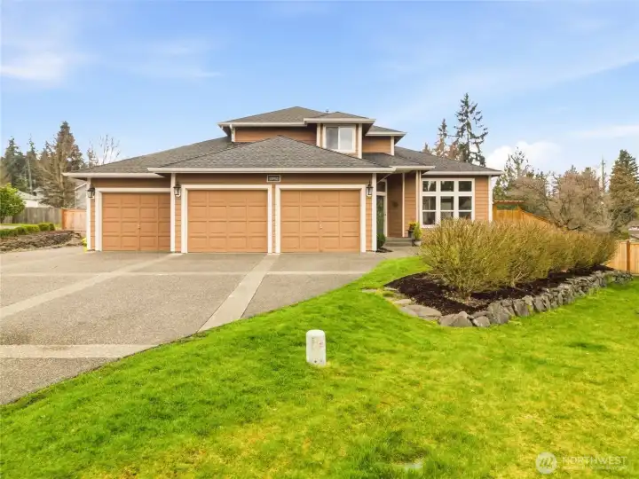 Welcome to paradise in lovely Highland Meadows! The moment you turn onto 108th, you’ll see why this neighborhood is such a wonderful place to call home. This truly special residence was custom built and has never before been on the market. Pride of ownership shines throughout this one-owner home. Situated on a shy 1/3 acre lot, the property offers endless possibilities for hobbies, gardening, and outdoor living. There is abundant parking, including an oversized 3-car garage with an electric vehicle charger, plus potential RV or boat parking. The large covered deck features skylights and a built-in corner gas fireplace—perfect for relaxing or entertaining year-round. Located on a quiet cul-de-sac, the setting is peaceful and private. Inside, the open living and dining areas feature vaulted ceilings that create a bright and spacious feel. Two newer gas fireplaces with remote controls add warmth and ambiance to the living and family rooms. The kitchen, breakfast nook, and family room offer a comfortable great-room concept ideal for everyday living. The spacious primary suite includes a walk-in closet and an ensuite bath with a soaker tub and separate shower. Updates include newer windows, siding approx. 7–10 years ago, roof approx. 10 years ago, and a beautiful kitchen, remodeled in 2020, with quartz countertops, new sink, dishwasher, and oven. Beat Summer heat with the central air conditioning. A rare opportunity in a highly desirable neighborhood—Welcome Home!