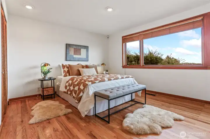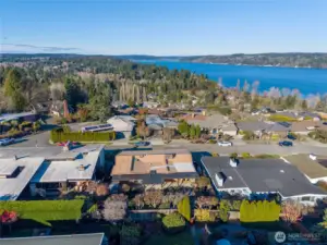 Awesome Mid-Century design in fabulous Inverness! Walls of windows provide expansive, protected views of Lake WA, the mountains, ever-changing skies, and marine activity. There’s constant natural light and a feeling of connection to the outside world. The spacious kitchen with loads of prep and storage space makes entertaining a snap, and flows out to a gorgeous back yard sanctuary. An attached sun-room is the perfect place to ease into the day or unwind at the end, and you’ll be drawn out back by the sounds of a waterfall and soothing spaces to relax. Coveted 3-bed/2-bath on the main floor, vaulted ceilings, excellent flow, and solid construction throughout. The large lower level offers a 4th bedroom, more storage, rec room, bonus spaces, and large 2-car garage. Updates include new interior paint, gleaming hardwoods, AC, and much more. Super location close to great schools, beaches, parks, Children’s, UW, U Village, and the popular Burke Gilman Trail. What a wonderful place to call home!
