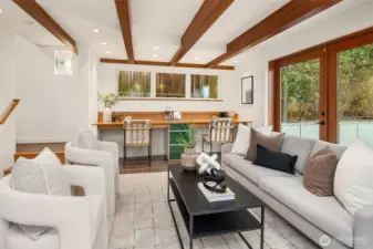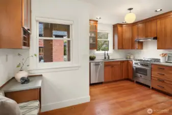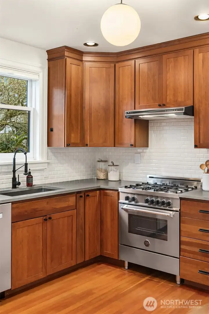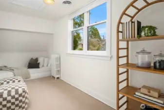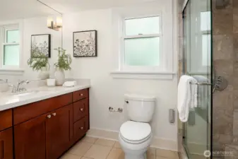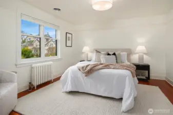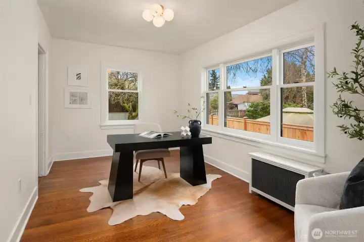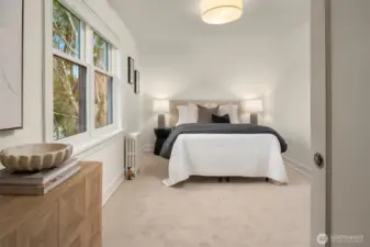 This lovely brick Tudor on a quiet corner lot in the heart of Ballard has 5-beds total with 4 in the house plus 1 ensuite in the cottage. This meticulously maintained home blends timeless character with more than $240K in thoughtful improvements, including new windows , a remodeled full bath on the main level, updated electrical, and radiant heat plus a heat pump providing A/C. The main level offers a warm, light-filled layout with an updated kitchen, inviting living and dining spaces, and a versatile room that works beautifully as a den, office, or fourth bedroom. The newly remodeled full bath on this level adds both style and convenience. Upstairs, you’ll find three comfortable bedrooms and an updated ¾ bath, creating a functional and flexible upper level. The partially finished lower level features new carpet and provides the perfect bonus space for relaxing, hobbies, or storage. A true standout is the detached 1bedroom cottage tucked privately in the backyard. With vaulted ceilings, a modern bath, and seamless indoor-outdoor living, it’s ideal as a guest suite, home office, or potential income-producing rental. Outside, enjoy a fully fenced and landscaped yard with a new fence, off-street parking, and EV charging. Set on a peaceful, tree-lined street just moments from Salmon Bay Park, Delancey, Frankie & Jo’s, and Rosellini’s Bakery, with Ballard’s celebrated dining, shops, and farmers market all within easy reach. Downtown Seattle is just minutes away.
