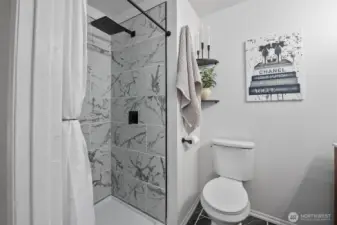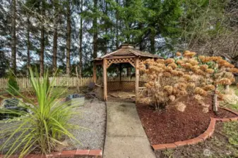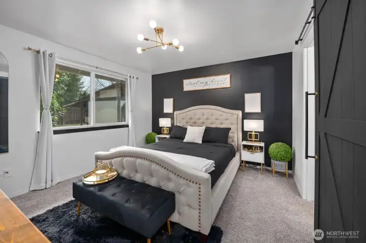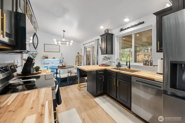 Pulling into this captivating fully remodeled home, you’re welcomed by a wraparound driveway lined with lush trees and plenty of parking for large gatherings. Situated on over an acre of flat, usable land, there’s room to create your own small farm, with established blueberry bushes and mature apple and pear trees ready for summer picking. A brand-new roof (April 2025, with warranty) and a charming covered front porch set the tone.Step inside to vaulted ceilings, all-new flooring, modern fixtures, and thoughtful finishes throughout. The spacious living room flows seamlessly into a dreamy kitchen featuring stainless steel appliances, butcher block countertops, stylish backsplash, and bar seating that opens to the dining area—perfect for entertaining.Down the hall are three generously sized bedrooms, a beautifully remodeled main bath with tiled surround, and a stunning primary suite complete with a walk-in closet and fully updated private bath showcasing double vanities and a tiled shower with waterfall feature.The laundry room offers abundant storage just off the garage. Outside, enjoy year-round gatherings on the expansive covered back patio with outdoor TV and windbreak wall. The fully fenced backyard feels private and serene, complete with a pond, fire pit, gazebo, workshop outbuilding, and lush landscaping. Country living with space, style, and convenience, just minutes from town.