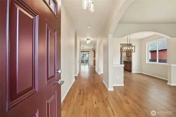 Welcome to this stunning 4-bedroom retreat in a private, gated Graham cul-de-sac! Boasting 3,202 sq ft of meticulously maintained living space, this home shines with fresh interior paint, updated designer lighting, and gorgeous solid hardwood flooring throughout the main level. The chef-inspired kitchen features slab granite, premium stainless appliances, and a custom mudroom with bench seating for effortless organization. Relax in the primary suite with a new ceiling fan and spa-like bath, or utilize the versatile front bedroom with its own walk-in closet. High-efficiency upgrades include a heat pump for year-round comfort, central A/C, and a tankless hot water heater. The massive 0.32-acre lot is an entertainer’s dream, featuring a covered patio, freshly stained fence, and professional landscaping. The spacious 3-car garage now includes a convenient new door from garage for easy backyard access. Prime location with a quick commute to JBLM, schools, and shopping. This move-in-ready gem truly has it all—welcome home!