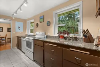 Tucked into an exceptional location, this charming mid-century modern rambler offers the perfect blend of timeless design and everyday ease. Set on an expansive 1/3-acre lot, the property unfolds into a truly special park-like backyard retreat — complete with a tranquil fish pond, lush mature landscaping, and multiple outdoor spaces designed for connection and relaxation. A covered pavilion creates the ultimate setting for year-round entertaining and grilling, while a detached shed and versatile outbuilding open the door to endless possibilities — from creative studio or workshop to hobby space or future expansion. Thoughtfully sited for privacy yet ideally positioned near local amenities, this rare rambler captures the essence of Northwest living with a little extra soul and style.
