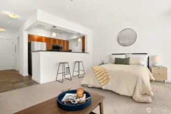 Looking for your upscale, city pied-a-terre? This light bright and spacious studio unit in the renowned Ballard Place community features designer touches throughout while offering a wealth of amenities to enjoy. Sunny courtyard with two jacuzzies. Heated and secure storage unit as well as one of the best parking spaces in the building. The Ballard Place community provides a full-time concierge staff, gym, sauna, conference & computer room, rooftop deck, pea-patch garden, entertainment lounge & patio for hosting, updated security system & secure parking. All in the heart of Ballard- close to restaurants, shopping, the beach, farmers market, and easy commute downtown. Pet friendly, low dues, and no Rental Cap!