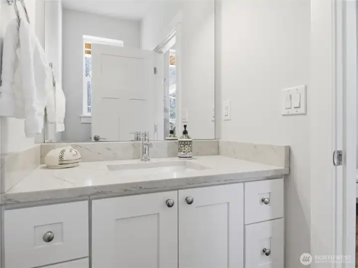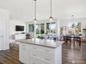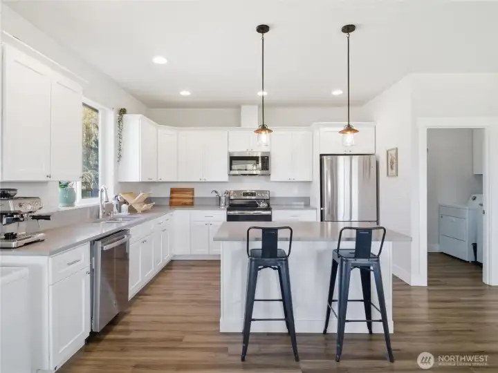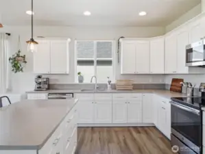 Tucked away in Rochester with scenic views of the Black Hills, this thoughtfully custom-built rambler blends quality craftsmanship with everyday comfort. The open-concept design showcases engineered hardwood flooring throughout the kitchen, great room, dining area, and laundry, creating a warm and cohesive feel. The kitchen is beautifully appointed with quartz countertops, stainless steel appliances, soft-close cabinetry, crown molding, and an under-mount sink, all designed with both style and function in mind. White millwork and craftsman-style doors add timeless character throughout the home. The spacious primary suite features a luxurious five-piece bath, offering a relaxing retreat at the end of the day. Energy-efficient windows and a heat pump provide year-round comfort. Outside, you’ll find meticulously maintained landscaping, an attractive aggregate driveway, entry, and back porch, plus a generous deck, perfect for relaxation while enjoying peaceful views.