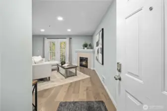 Tucked within the gated community of Shadow Hawk II, this 2-bedroom, 1.75-bath residence offers a rare balance of privacy and convenience. Positioned on the main level with no stairs, Unit #2143 invites effortless living from the moment you arrive. Inside, fresh paint and updated flooring create a clean, modern foundation. The kitchen features updated stainless steel appliances and a layout that flows naturally into the living space — ideal for quiet evenings or hosting a small gathering. Both bathrooms have been thoughtfully refreshed, adding a polished, contemporary feel. French doors open to a peaceful greenbelt backdrop, creating a sense of privacy and calm that’s increasingly hard to find. Designated parking and ample guest spaces provide everyday ease, while residents enjoy access to a gated entry and clubhouse within this well-maintained community. Secluded, yet just minutes from The Landing, local shops, dining, and convenient highway access — you’re close to everything without feeling exposed to it. No rental cap.