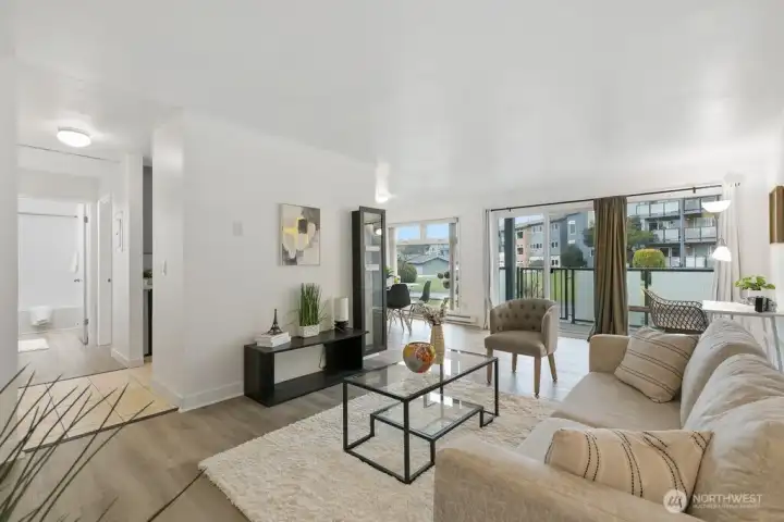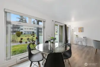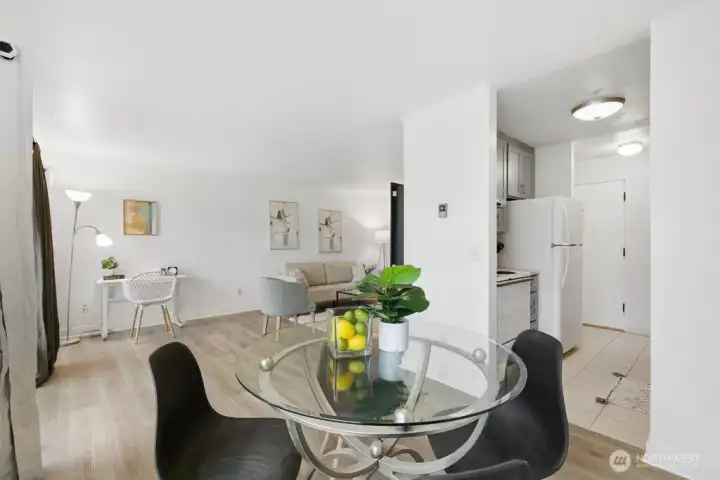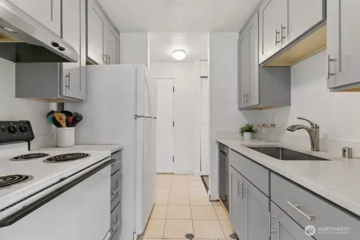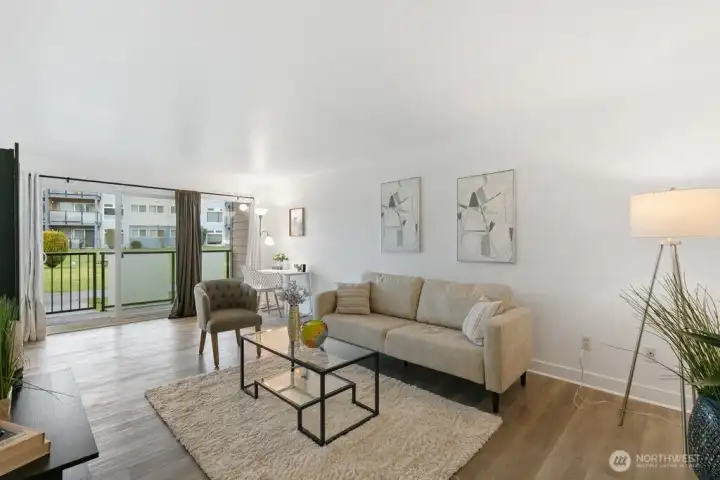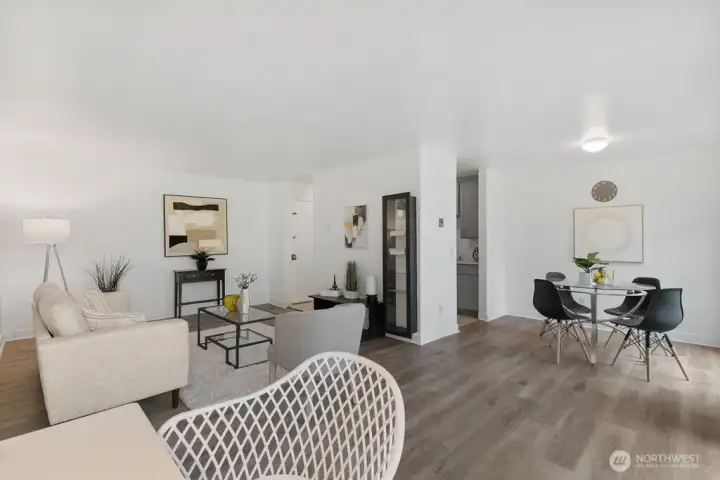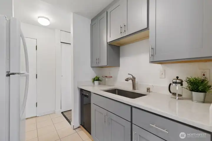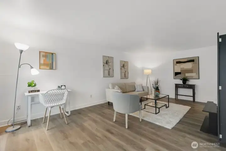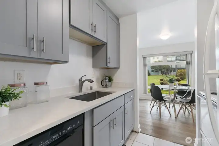 Fully remodeled, this private ground-floor home at Canyon Estates is move-in ready with fresh paint and new LVP flooring. The flexible layout includes a spacious living area, full dining space, and ample storage. The updated kitchen boasts shaker cabinets and quartz counters. Large bedroom with generous closet adjoins a renovated full bath. Washer/dryer hook-up in hall or use nearby laundry. Private patio overlooks grassy commons with single-level access. HOA covers W/S/G & earthquake insurance; exterior and plumbing updates done. Parking, clubhouse, pets (2, 25 lbs), rental cap met. Minutes to Seattle–Tacoma International Airport and commuter routes.