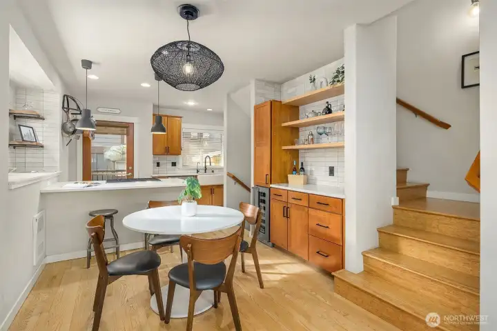 Tastefully updated and intentionally designed across three levels, this Madison Valley townhome delivers a living experience defined by both architectural character and warmth. The main level centers around a refined kitchen with quartz surfaces, stainless steel appliances, maple cabinetry, and clean sightlines that open naturally into the living and dining spaces. Interior staircases introduce a layout that feels both functional and distinctly residential rather than typical. Upper levels offer comfortable bedroom retreats, while the lower level extends outward to a private stone-finished seating area with dedicated storage shed—an amenity that enhances daily livability. One designated driveway parking space included. Set within one of Seattle’s most consistently sought after neighborhoods, with immediate access to the Arboretum, Capitol Hill, and Downtown. Furnishings may be included, presenting a complete and turnkey opportunity.