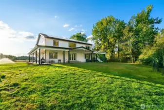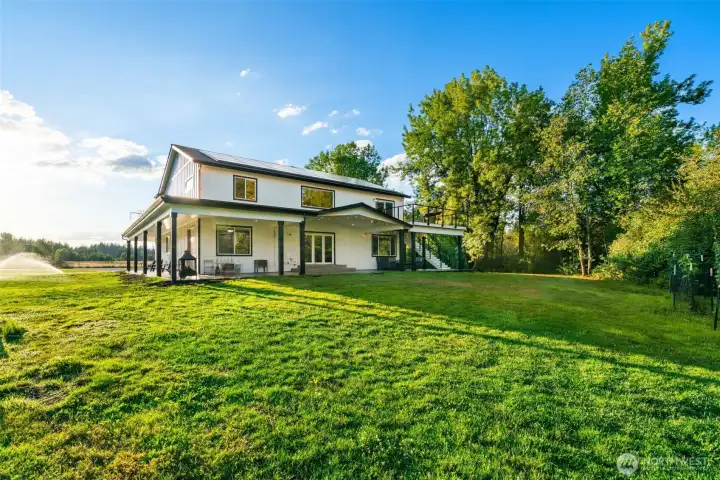 Solar-powered mornings, garden-to-table living, and total privacy, without sacrificing modern design. Welcome to this peaceful off-grid retreat just 15 min from town. Completed in 2020, this craftsman modern farmhouse sits on 5 flat, usable acres in the highly sought-after Camas District. Designed with sustainable living in mind, the home features 36 solar panels, Tesla battery banks for energy storage, an artisanal drinking water well, smart locks with cameras, and AI-powered security monitoring. Ideal for homesteading or simply enjoying a more self-sufficient lifestyle, the land includes fruit trees, a garden, and a chicken coop. An ADU above the garage provides flexible living space for guests, rental income, or multi-generational needs. Virtual Rendering is of proposed remodel, included for an additional $40k.