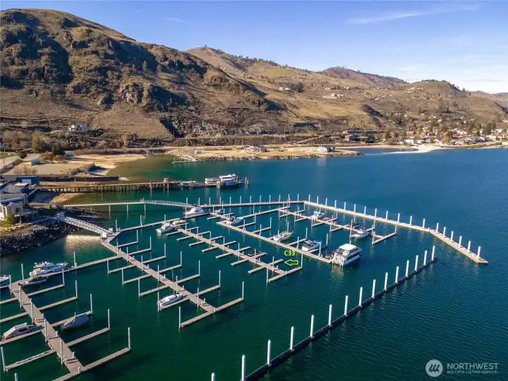 Bring your boat & enjoy all the lake life offers in Chelan's newest, luxury, gated marina community- SUNSET MARINA! Offering 24' boat slip #C33 located in protected "C" Dock in a great location towards the end of the gang plank. Boat slip has allowable length extending 3' beyond end of slip. Accessible 24/7, Sunset Marina provides deep-water year-round moorage, along with an amenity filled clubhouse allowing boating enthusiasts a unique opportunity to relax & stay. Each slip has H2o, power, WIFI, w/a pump out facility located at the breakwater. Clubhouse amenities include showers, laundry, convenience store, wet bar, TV's, large fire pit & patio w/BBQ stands & more. Prime location w/private parking lot a short distance from the marina.