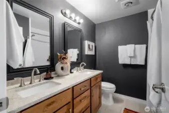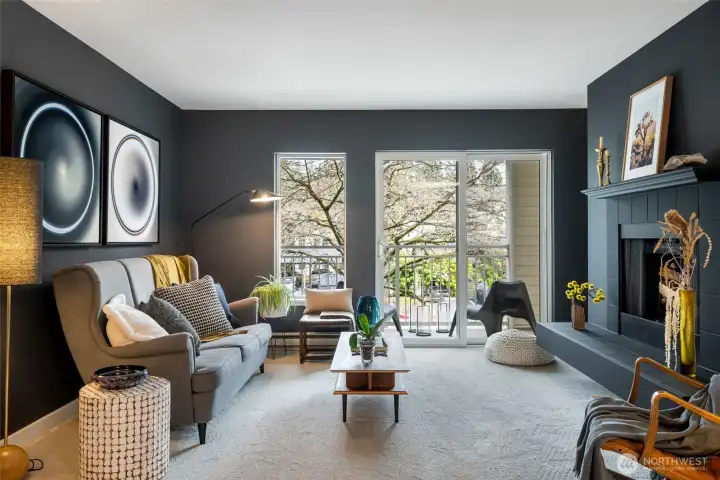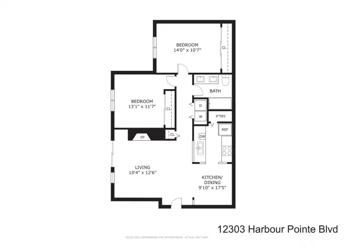 This sophisticated 2-bed, 1-bath condo is a standout from the rest and sure to make you linger. Recently elevated with brand-new surfaces throughout-fresh paint, plush new carpet, solid wood cabinetry, quartz countertops, and newer appliances. Every finish was selected with intention, creating a cohesive, high-end feel. Full-size in-unit washer and dryer, wood-burning fireplace, newer water heater, two dedicated parking spaces, a covered balcony and additional storage - what more could you want at this price point? The double sink bathroom, dining area, generous closets, and sizable bedrooms create an efficient layout without wasting space. Enjoy the abundant community amenities including an indoor/outdoor pool, spa, sauna, fitness center, game room, clubhouse, and athletic courts. Location only amplifies the value—close to top-rated schools, sought-after restaurants, everyday grocery options, and the Harbour Pointe Golf Course for weekend leisure. Come see for yourself. Inspection + resale documents available.
