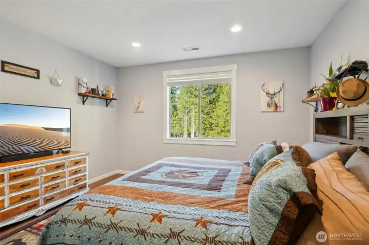 Welcome to one of the most private & desirable homes in Silverlake Village—backing to peaceful greenbelt & a wildlife-filled retention pond-deer, birds, and serene natural views become part of everyday life. This beautifully maintained ranch offers 1,651 sq ft of thoughtfully designed living w/upscale finishes & a flowing open layout. Expansive windows frame tranquil forest views & fill the home w/natural light, creating a seamless connection to the outdoors. The stunning kitchen is the heart of the home, featuring granite countertops, full tile backsplash, SS appliances, gas range with pot filler, & charming custom pantry door. The great room invites relaxation with its floor-to-ceiling stone fireplace, custom built-ins, & inviting atmosphere. Step outside to your covered Trex deck with heater & gas BBQ hookup—perfect for year-round enjoyment. The fully fenced and landscaped backyard offers rare privacy within the community, creating a peaceful retreat with no rear neighbors. The spacious primary suite overlooks the greenbelt & features a walk-in closet, dual sinks, & tiled walk-in shower. Luxury vinyl plank flooring, heat pump with heating & cooling, finished 2-car garage & quality craftsmanship throughout. Located just minutes from Silverlake’s public boat launch, fishing, hiking & year-round recreation, this home offers the ideal blend of modern convenience, low-maintenance living & PNW beauty. Enjoy newer construction, privacy & nature—without the upkeep of acreage.