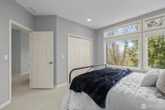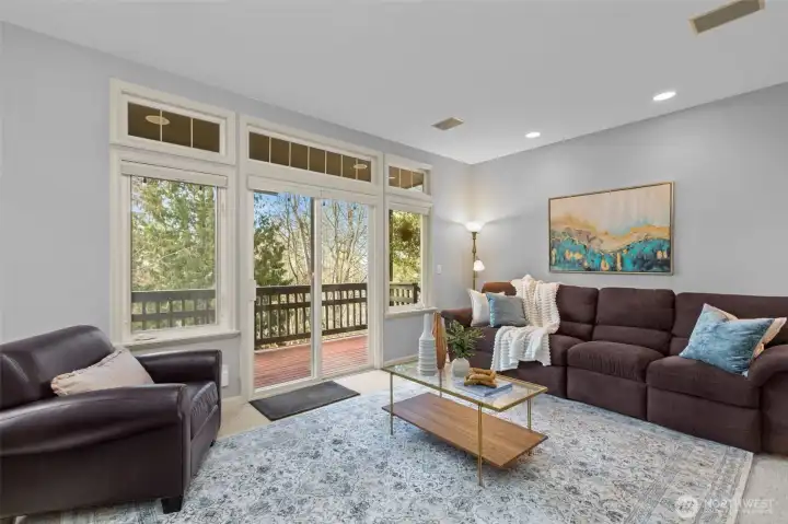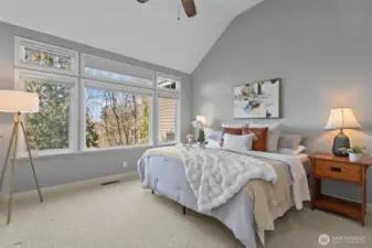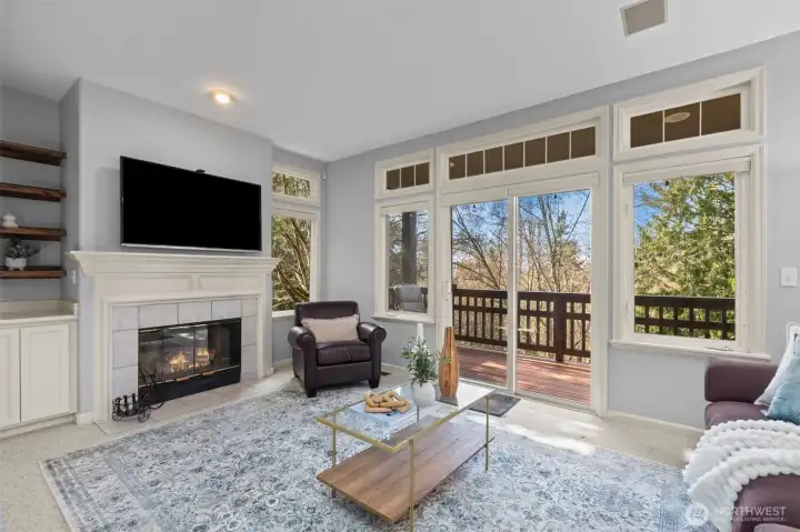 Rarely available Buchan built daylight rambler in the beautiful Windward Bluff community. This meticulously maintained home offers the convenience of effortless main floor living, featuring a completely remodeled chef’s kitchen and two stunningly updated main floor bathrooms. Step through the formal entry onto gleaming hardwood floors that lead to a light filled great room with soaring ceilings and expansive windows. The primary suite serves as a true retreat, boasting a custom renovated ensuite complete with radiant heated floors for ultimate comfort. Enjoy seasonal sound and mountain views from your private upper deck, or retreat to the large lower level family room and covered patio. With professional exterior maintenance included, you can spend your time enjoying the nearby Harbour Pointe golf course and community trails. This is Northwest living at its finest.