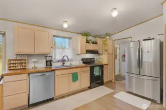 Welcome Home to this recently updated Home! New Tawny Oak Waterproof Flooring throughout, New Cabinets and Butcherblock Counter tops, Newer Stainless appliances, Open Floorplan, Primary Suite has a full bath and Walk in closet. The established garden will blow your mind when the Strawberries, Asparagus, Marionberries, Raspberries, Blueberries bloom. The fruit bearing orchard has Honey Berries, Rainier Cherries, Asian Pears, Fuji Apples, Italian Plums, Edlerberries, and Lady Apples. The Garage has 220 power, RV Parking, Fully Fenced Back Yard, Goat Pen, and so much more! This MOUNTAIN VIEW is incredible, You must come and see!