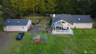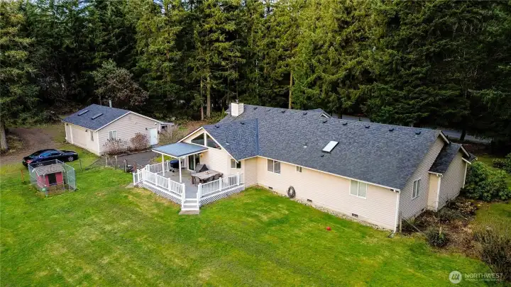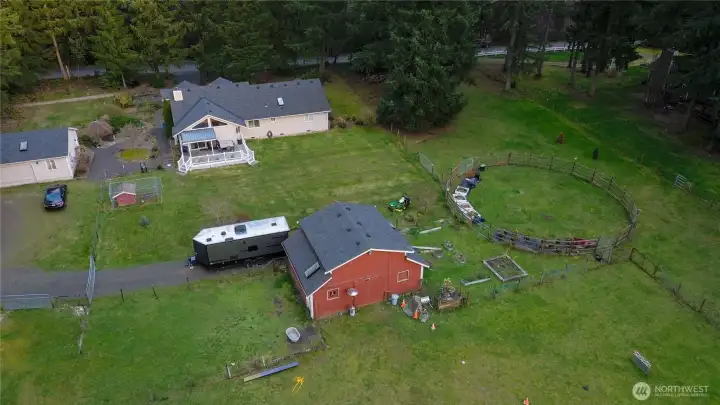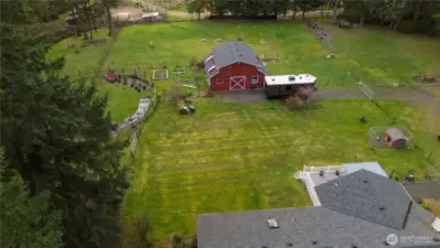 Dreaming of a serene farm? Horses, goats, chickens, dogs, flowers, fruit, veggies, homeschool homestead, cottage business, any or all of the above? You can do it all here! This modern stick built 3BR/2BA rambler with 2 car garage offers generously sized rooms, a convenient floor plan all on one level with open concept kitchen & family room, plus living and dining rooms. This home features a ductless mini-split A/C and a cozy free-standing woodstove so you'll enjoy maximum comfort and efficiency all year long. This home is on 2.3 acres, all of it flat and usable! It is a well-appointed equestrian property featuring a three-stall BARN with individual water, heated tack room, round pen, and full fencing with cross-fencing. An additional detached two-car SHOP includes a finished office with bathroom, plus a separate wood shed. This is a spacious corner lot on a paved road with a second entrance providing easy access and ample space for horse trailers, boats, or RVs without blocking the main drive. Flowering shrubs and fruit trees and room to roam—Quiet country living just minutes to Gig Harbor and Port Orchard, with easy access to Highway 16 and nearby ferries. The sunsets are gorgeous as they paint the sky behind the barn, welcome home!