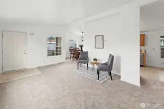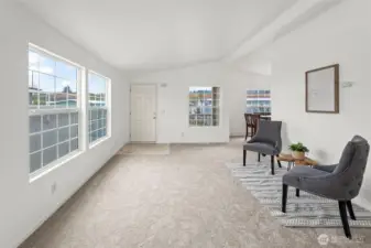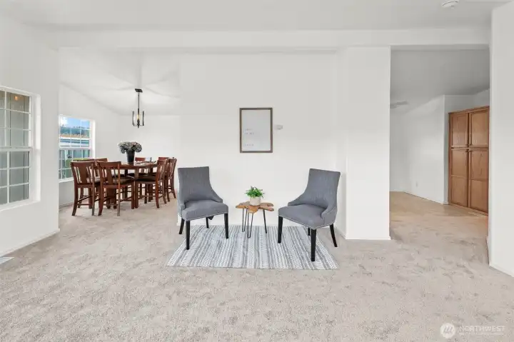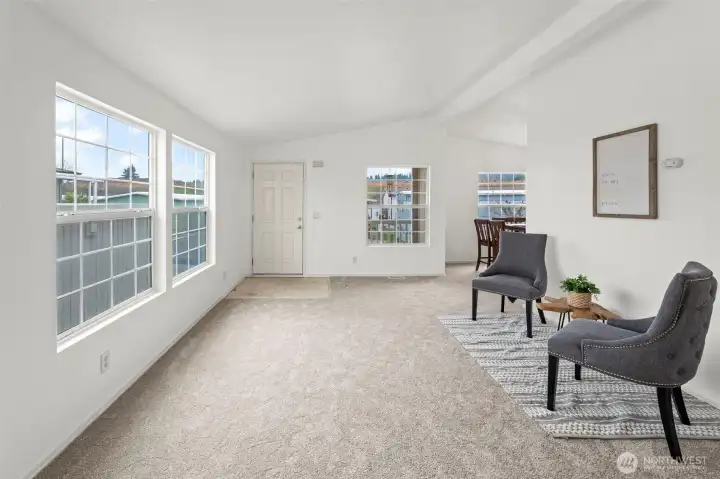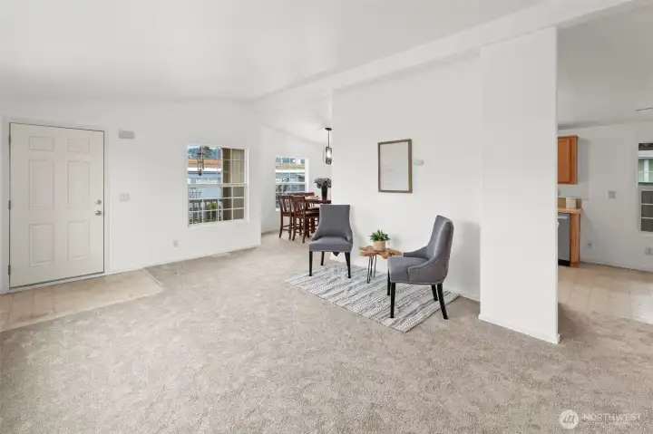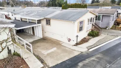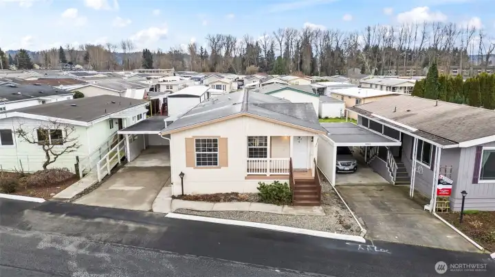 Experience the perfect blend of comfort and convenience in this impeccably maintained 1,200 sq ft home located in one of Puyallup's premier 55+ communities. Nestled in the heart of downtown, this home has been refreshed with brand-new carpet and refreshed paint creating an airy, "light and bright" atmosphere that feels like home the moment you step inside. The thoughtful floor plan features a large kitchen, huge family room, formal living room, dining room and a full size laundry room as well as 2 spacious bedrooms and 2 bathrooms, the massive primary boasts a huge walk-in closet and an oversized private bathroom, with tons of counter space and a large shower. The secondary bedroom is perfect for guests or a home office, and has tons of natural light it is situated near the second full bath for maximum privacy. Enjoy a large, light and bright, open living area that flows seamlessly into the dining space—ideal for entertaining or quiet afternoons. This home also has AC for comfort all year round. This home is 100% move-in ready; all the hard work has been done for you! Living here means you’re just minutes from the Puyallup Farmers Market, local dining, shopping, hospitals, freeways and the Sounder train, all while enjoying living in an established and sought after community that includes a workout room, onsite laundry, and a community center. If you are looking for a low-maintenance lifestyle without sacrificing space or quality, this is the one. Current space rent is $1109