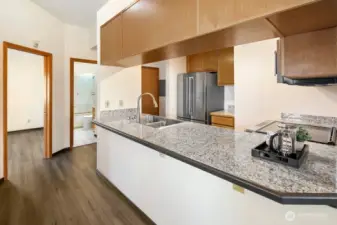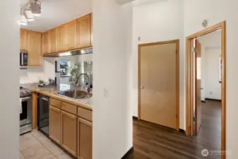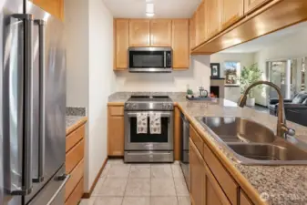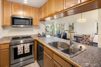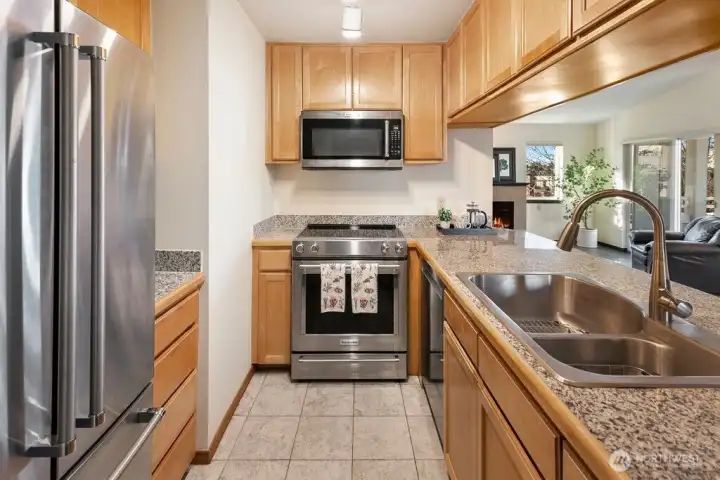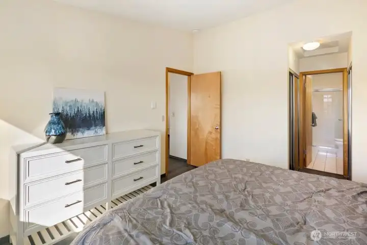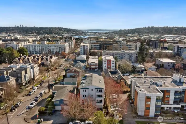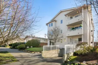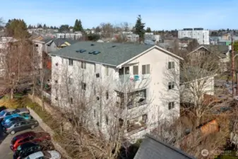 Welcome home to your serene retreat! This top-floor, end-unit condo is drenched in natural light and framed by lush greenery, offering rare privacy and tranquility just steps away from the heart of Ballard. Thoughtfully designed layout makes the home feel larger than its footprint, with oversized bedrooms, generous closet space, and an easy flow throughout. Additional features include vaulted ceilings with skylights, Whirlpool tub, updated vinyl plank flooring, newer water heater, secure video doorbell, in-unit washer/dryer, two tandem parking spaces and private storage in the secure garage. This home is the perfect blend of peace and city living in vibrant Ballard!