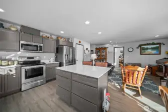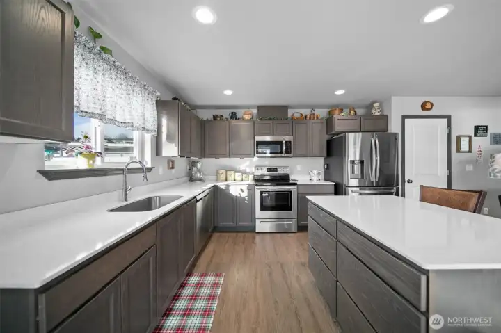 Stunning views of the river and mountains from the backyard of this cozy one story home. Great room has open feel with dining space and large kitchen. Primary bedroom is on the opposite end of the 2 extra bedrooms and bathroom. Spacious kitchen with island, quartz countertops, and pantry. You will love the extra large patio in the fully fenced backyard for your outdoor furniture and get togethers. Added landscaping curbing, water softener, and security system included.