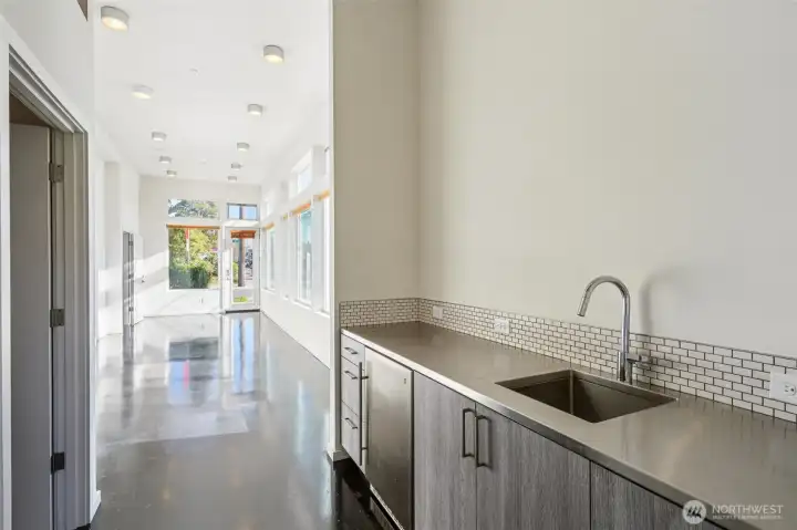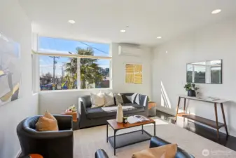 Exceptional opportunity to own a corner live/work townhome filled with amazing natural light throughout. The main living level features an open concept layout, ideal for modern living and effortless entertaining. The upper level includes two comfortable bedrooms, highlighted by a spacious primary suite with a spa inspired bathroom and oversized shower. On the ground floor—with its own separate entrance—a versatile 600 sq. ft. street level flex/studio space offers outstanding visibility and endless possibilities. Complete with its own kitchenette and full bathroom, this space is perfect for work, guests, or rental use. See below for the rental history. A secure parking garage provides convenience and peace of mind. The rooftop deck showcases stunning territorial and mountain views—including Rainier, the Cascades, and the Olympics—creating an ideal setting for relaxing or hosting gatherings. Located in a highly walkable neighborhood close to shops, restaurants, Met Market, and Downtown Ballard, this home delivers the perfect blend of flexibility, comfort, and vibrant urban living.