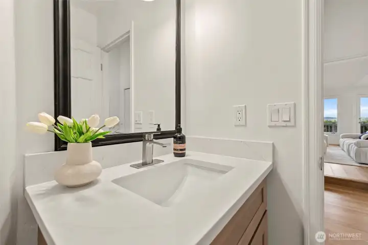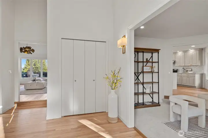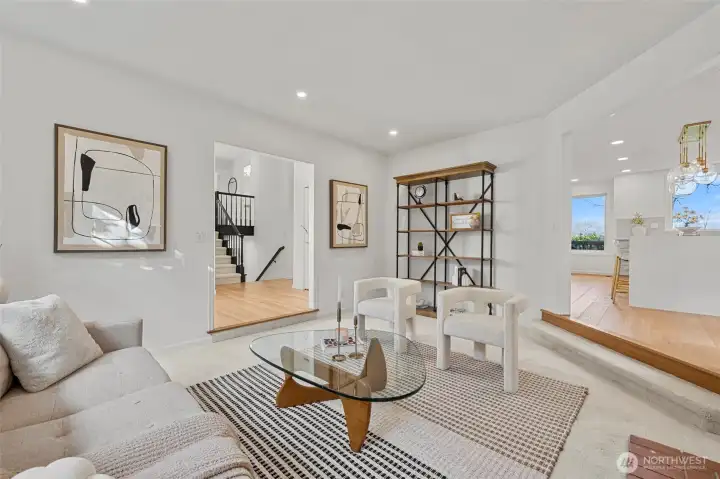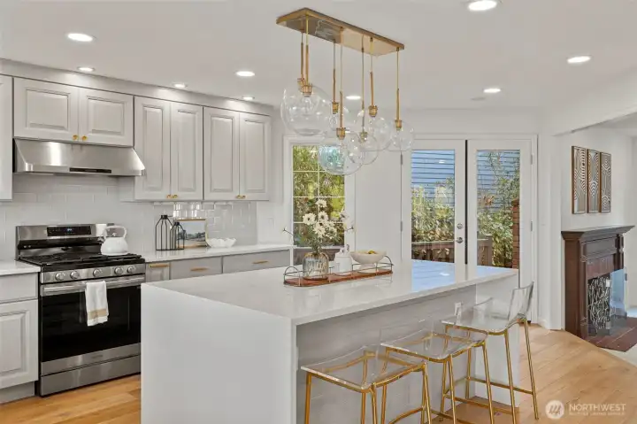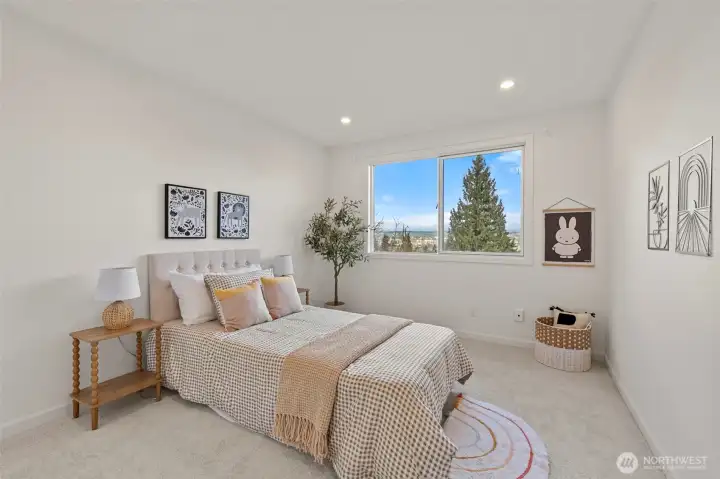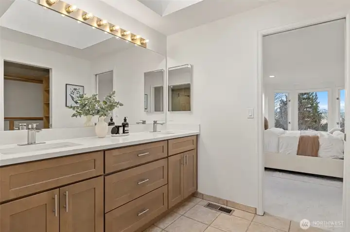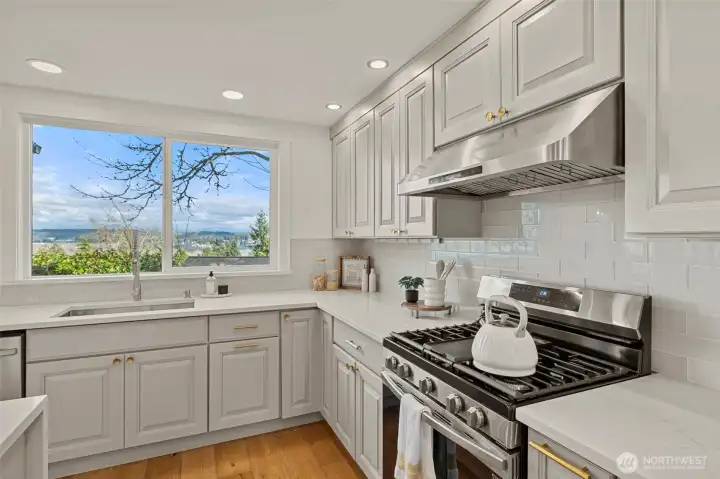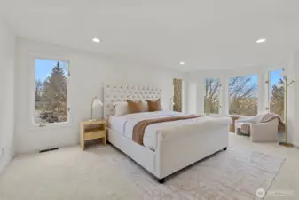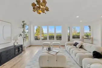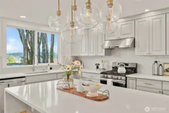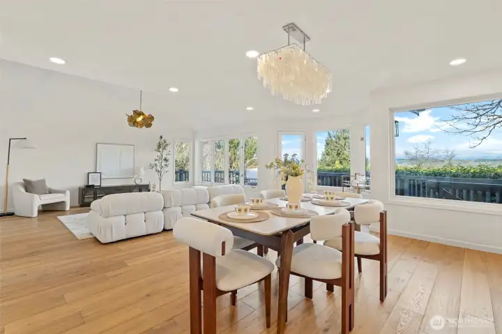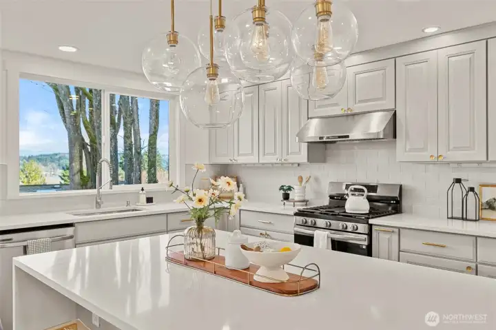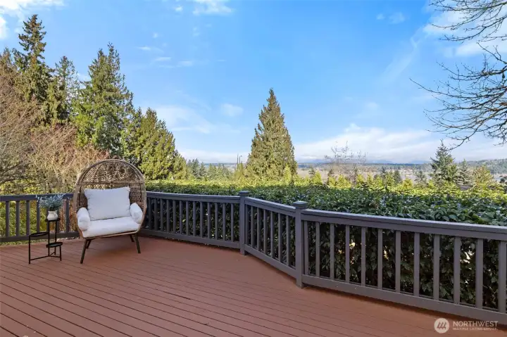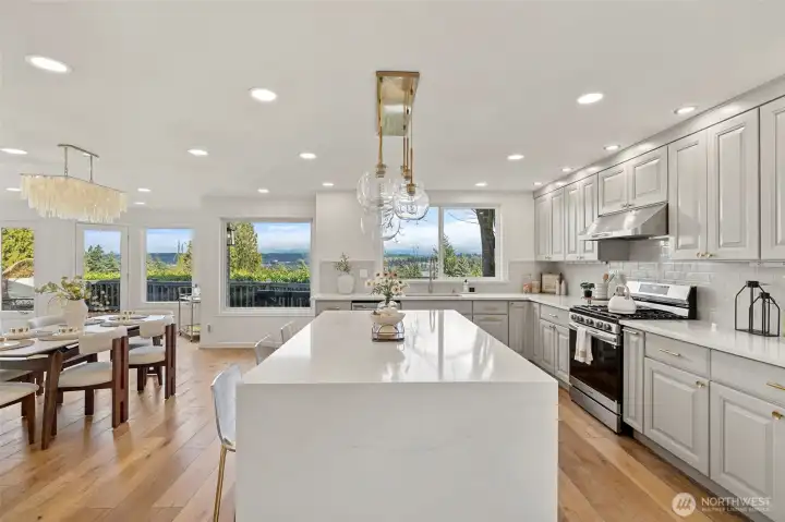 Sweeping Lake Sammamish & Cascade Mountain views in a prime Microsoft location! Fully renovated Burnstead traditional nestled on a quiet cul-de-sac just mins to MSFT, 520, and Marymoor Park. This move-in ready home has been thoughtfully refreshed throughout with brand-new interior & exterior paint, new hardwood and carpet, modern lighting, updated kitchen cabinetry, oversized quartz island with 3cm full-slab countertops, new stove and hood, refreshed baths, and designer finishes including sleek black stair railing accents. The updated foyer flooring seamlessly connects to the newly reimagined kitchen. Ideal layout featuring formal living & dining rooms, spacious family room with fireplace, bright kitchen with eating area, and generous rec room. Lower-level bedroom with ensuite offers flexibility for guests, office, or multigenerational living. Two view decks create effortless indoor-outdoor flow. Exterior enhancements and new turf on the lower deck complete the refreshed appeal. Additional unfinished space provides future potential for expansion, workshop, gym, or hobby room. Quiet setting. Strong schools. Unmatched convenience.
