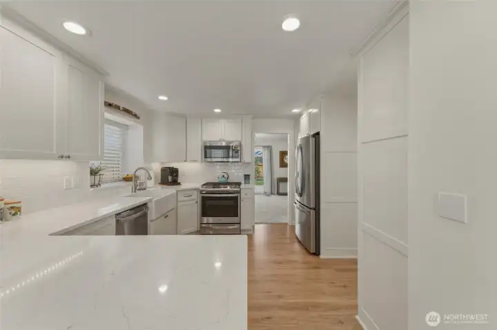 Step into Luxury with this completely high-end single-level home, where every detail has been thoughtfully upgraded. The stunning kitchen is a true showpiece; featuring custom cabinetry w/convenient pull-outs, elegant quartz countertops, a farmhouse sink, pantry space, under-cabinet lighting and premium GE Appliances including a 6 burner gas stove-perfect for both everyday living and entertaining. Both bathrooms have been beautifully remodeled with new cabinetry, dual sinks in primary, and large tiled showers with sleek sliding doors, creating spa-like retreats. The inviting great room offers a cozy gas fireplace, all new lighting, and a skylight's that fills the space w/natural sunlight. The floorplan flows seamlessly into the formal din rm which overlooks the newly landscaped backyard, complete w/pergola and new shed, making the perfect place for hosting gatherings or relaxing. Every room, (floors and walls) all feel like a brand new from the meticulous remodeling that include being freshly painted inside & out. Plus roof was replaced in 2020 and new hot water heater, providing peace of mind for years to come. Located in a fantastic area close to all amenities, and featuring access to a private community park. This gorgeous home truly has it all. Don't miss the opportunity to make it your forever home. Remember to request the full Featured List of all new upgrades making this home feel like brand new.