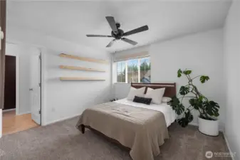 From the moment you walk in, the open-concept main floor pulls you in. It's light, airy, and styled to impress. The new luxury vinyl flooring grounds the whole space with a clean, modern feel that looks like it belongs in a design magazine. Upstairs, both bedrooms can be considered primary! Each with their own private bathroom and walk-in closet. Laundry also upstairs, so no need to run your laundry baskets up and down stairs! Half bath on the main level for guests. Newer appliances throughout. Every detail thought through. Step outside and you're literally right across the street from the park, perfect for morning walks, evening runs, weekend picnics, all without getting in your car. Excellent location in the Horizon Pointe neighborhood.