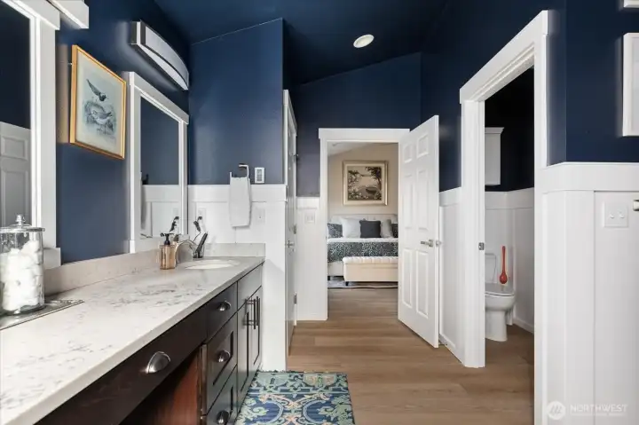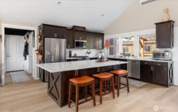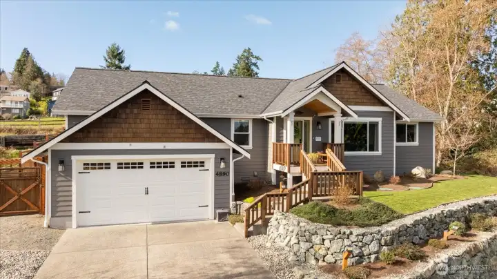 Beautifully upgraded 3-bdrm, 1.75 bath home blends thoughtful design w high-end improvements inside & out. Add a view of Holmes Harbor & backing up to a golf course, this home is truly one of a kind. The moment you arrive, you notice a beautiful curb appeal & stunning landscape, two-tiered rock wall & lighting. No detail has been overlooked! Brand-new flooring flows throughout. Great room is a true showpiece w custom fireplace & media wall, built-in bookcases w storage, & coffee bar. Open concept perfect for entertaining or cozy evenings at home. Kitchen offers both style & functionality w an oversized island, endless counter & cabinet space, upgraded appliances, convenient roll-outs in cabinets & perfectly designed pantry. Laundry room with built-in cabinetry & additional refrigerator. Retreat to the primary suite featuring vaulted ceilings, spa-inspired bathroom w a double vanity, tile finishes & dream walk in closet w a remodeled closet system. Fully fenced yard meticulously designed for enjoyment & practicality, complete with patio space, garden walls, pathways & pergolas creating inviting outdoor living. Garage w electrical upgrades, whole-house generator, EV charger, & a lift to make the home accessible or moving items up the stairs. Every detail was considered in this extensively improved home- offering comfort, efficiency, elevated style & exceptional functionality inside and out. Truly a rare find with upgrades you can see & improvements you'll appreciate every day!