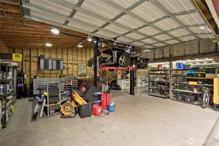 Set in the desirable Hobart area, this well-maintained 1940s Craftsman blends timeless character with modern convenience and room to spread out. The main-floor primary suite is warm and inviting—complete with doors that open to the expansive deck, creating an effortless indoor/outdoor connection. The custom designed primary closet includes an in-wall safe for added security. Upstairs is conveniently versatile with two additional bedrooms, a full bath, and bonus spaces ideal for an office, playroom, or cozy reading nook—perfect for work, hobbies, or guests. Warm hardwoods, custom cabinetry, and a bright layout feel classic yet comfortable. The Permadry basement adds peace of mind plus extra usable space for storage, projects, or future possibilities. Step outside to a private retreat: a sprawling multizone Trex deck built for entertaining, a level open lawn framed by mature evergreens, and space to gather and play—basketball hoop, play area, pets, and gardens. Parking is abundant, with a large paved area for guests and toys. The showstopper is the huge shop/barn with a 9000-lb vehicle lift, multiple bay access, loft storage, and flexible room for a workshop or gym—bring your BIG ideas. Epoxy flooring and upgraded lighting add function and polish. Major systems have been addressed: electrical, plumbing, A/C, tankless water heater, and a new iron/backflush well filtration system. More than a home—it’s a lifestyle property made for entertaining, creating, and everyday comfort.