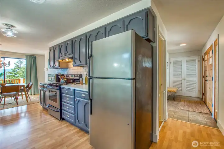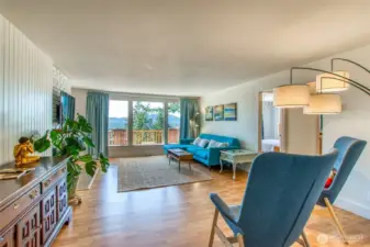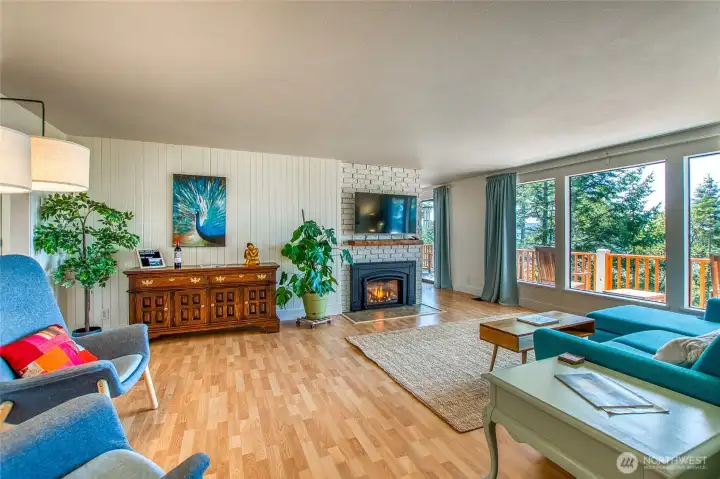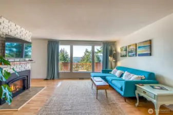 Enjoy sunsets over Eastsound and water views beyond from this stylishly updated home just 5 minutes to Moran Park. This Airbnb “guest favorite" invites effortless living year-round with its large circular drive, easy level entry, oversized 800 sq.ft. garage & shop, low-maintenance yard and many recent upgrades including: central heat/cooling, propane fireplace, new septic, 200-amp service, metal roof, gutters, exterior paint, new deck rail, front doors, remodeled bath and new flooring. A timeless floorplan gives you 2 beds/1 bath and living area on main floor plus a lower level w/ bedroom, private bath, utility room & flexible bonus room. Move-in ready + a peaceful setting close to lakes, trails, and local cafes = A real gem... Come see!