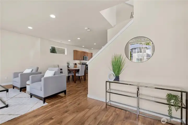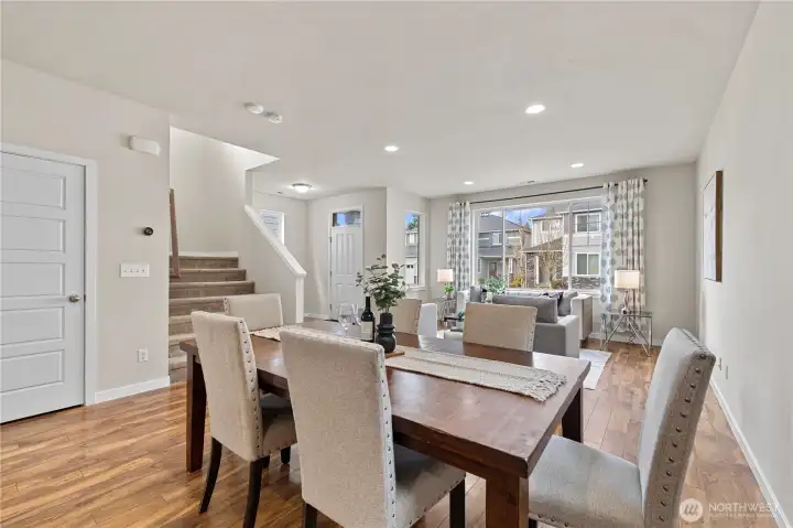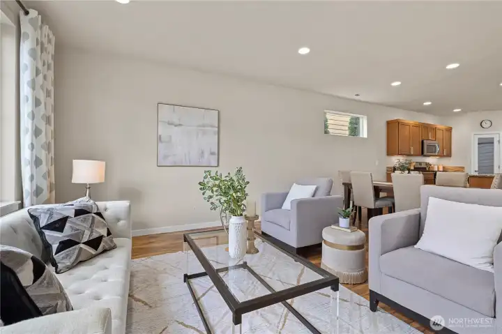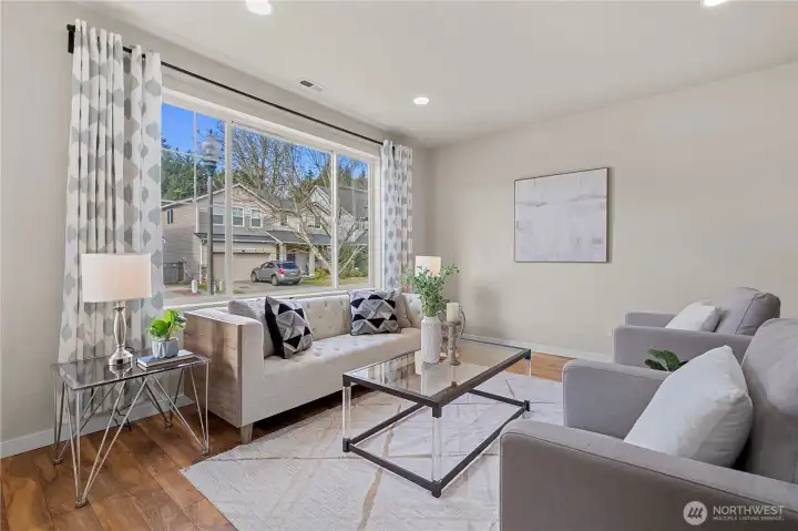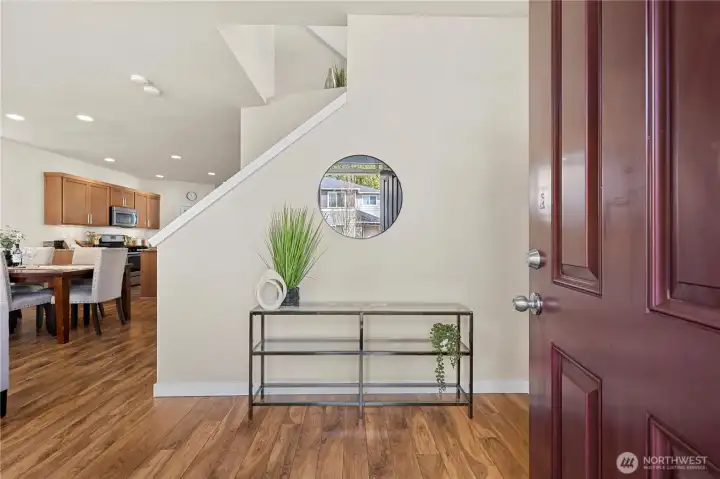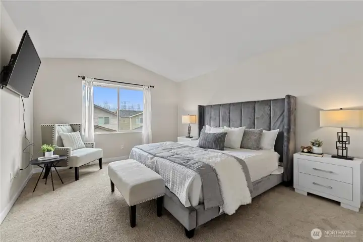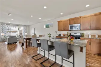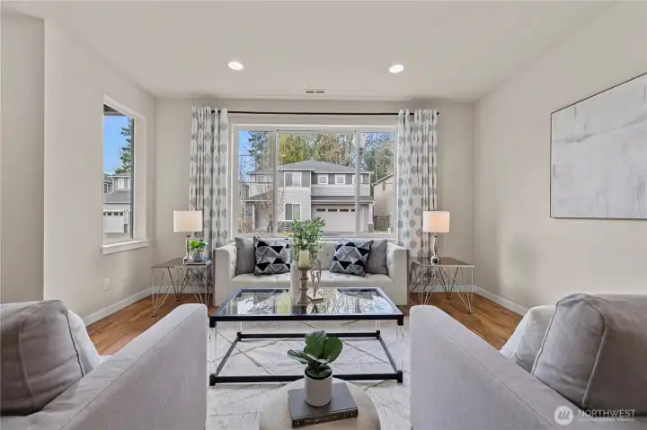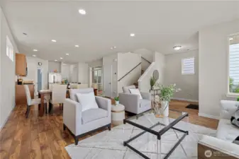 Experience elevated living in The Bridges, one of Auburn’s most sought-after master-planned communities. Ideally positioned on charming “Main Street” w/ alley access, this home offers classic curb appeal w/ the garage discreetly tucked behind for a cleaner, more pedestrian-friendly streetscape. Inside, the open-concept design seamlessly connects the living, dining, & gourmet kitchen—perfect for entertaining or everyday comfort. The kitchen features granite countertops, maple cabinetry, stainless steel appliances, a walk-in pantry, & a generous center island w/ seating. Durable hardwood-style flooring, a main-floor office, & a convenient powder room add flexibility for modern living. Upstairs, the vaulted Primary Suite serves as a private retreat with a 5-piece ensuite, walk-in closet, & its own deck offering Mt. Rainier views on clear Pacific Northwest days. Two additional bedrooms, a full bath, and upstairs laundry complete the second level. Enjoy year-round comfort with A/C & relax or host gatherings on the covered side deck. The Bridges is known for its interconnected parks, playgrounds, athletic courts, & scenic walking trails woven through protected open space & nature reserve areas. Just minutes to Costco, Trader Joe’s, Green River College, Les Gove Park & Community Center, eats, & everyday services. Easy access to Hwy 18, 167, & I-5 makes commuting throughout Auburn, Kent, Covington, effortless. Rare blend of community charm, thoughtful design, & A+ location!