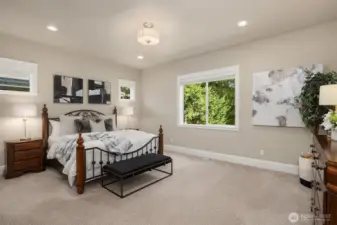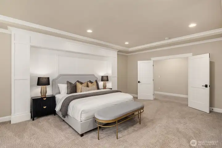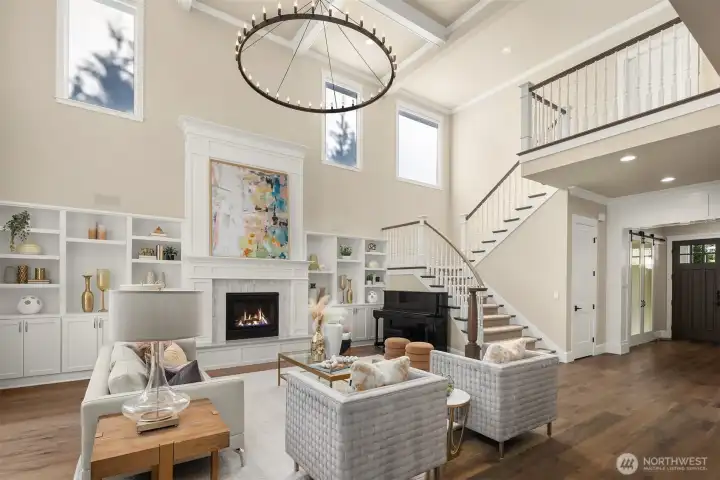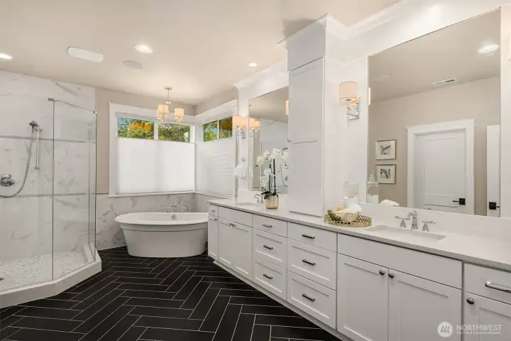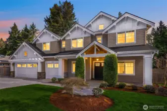 Rare MN Custom Homes resale in sought after quiet neighborhood of Enatai. Minutes from award winning Bellevue schools, world class shopping, waterfront, parks, trails, restaurants, and downtown Bellevue amenities! Main level offers soaring ceilings, banks of windows, light filled rooms, and open chef's kitchen with expansive slab island warmed by uniquely beautiful veins, large main floor guest suite, dining room with distinctive ceiling beams, and refined home office featuring double glass paneled sliding barn doors. Upper level offers a spacious primary suite with luxurious 5 piece bath spa, heated floors, and enviable closet, plus 3 generously sized bedrooms, sprawling bonus/media room, and convenient upper laundry room. The expansive flat yard and private covered patio with built-in heat & fireplace offer inviting outdoor living. This is a must see to appreciate all that is in this home!
