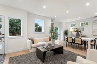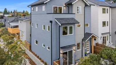 Experience refined modern living in this light-filled new construction community of five homes by Roland Development, ideally located in the heart of Ballard. Thoughtful architecture and sleek, contemporary finishes define the open-concept main level, where a welcoming entry leads into bright, connected living spaces designed for both comfort and entertaining. Upstairs, two flexible bedrooms share a beautifully appointed full bath, while the top-floor primary suite offers a peaceful, private retreat above it all. Step outside to your own fenced yard with low-maintenance turf—perfect for relaxing evenings or effortless gatherings. With assigned parking and EV charging, convenient access to transit, and close proximity to Ballard’s vibrant offerings—from local breweries and the farmers market to the scenic shores of Shilshole Bay—this home delivers the ideal balance of style, function, and location!