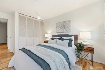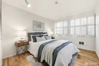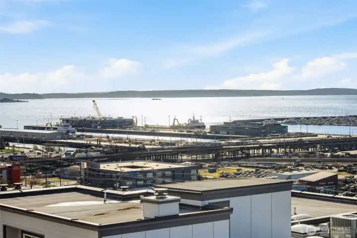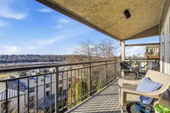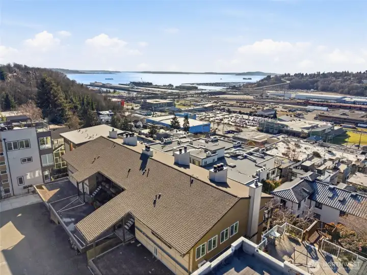 A rare opportunity to experience elevated living with abundant sun exposure and iconic views in the sought-after, West Queen Anne neighborhood. One of only two top-floor residences in the building with a vaulted ceiling; this 2 bedroom 1.75 bathroom condo features west facing windows that frame water and sky. Enjoy sweeping Elliott Bay and Magnolia Bridge views from the main living areas and expansive, private deck. Engineered maple hardwood floors flow throughout the interior, grounding each room with warmth and durability. The kitchen balances timeless cabinetry with newer quartz countertops, creating a functional space that looks both classic and refreshed. Corian window sills and wood louvered shutters enhance character and add privacy in the bedrooms. Each bathroom was thoughtfully remodeled with quality finishes and tasteful design. Comfort is enhanced year round with wood burning fireplace, two A/C units, King wall heaters and energy-efficient thermostat. In-unit laundry, assigned covered parking space and additional storage closet complete the package. Major building improvements including new siding, decks, windows (2018) and a new roof (2024) provide long-term peace of mind in this well managed, 12 unit HOA community. Conveniently located near Whole Foods, Ken’s Market, Interbay Golf and many great shops and restaurants. An incredible location offering easy access to Queen Anne, Interbay, Downtown Seattle and local transit.