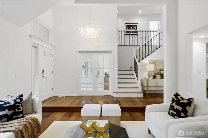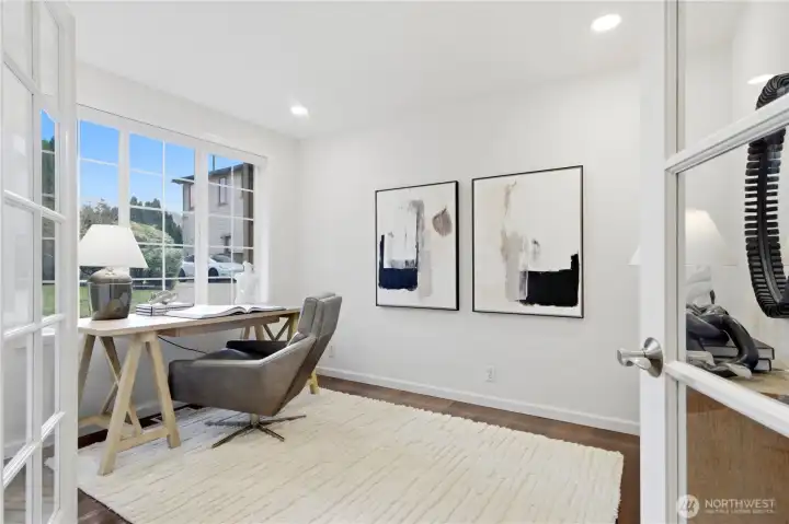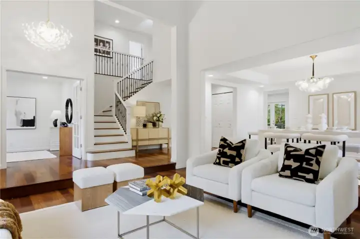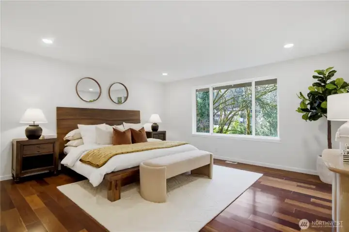 Positioned West Bellevue’s sought-after 98004 zipcode, this impeccably maintained Bennett-built home offers the rare combination buyers value most: an expansive 18,506 sq ft lot, a premier location near major tech hubs (Microsoft, Google, Amazon, Meta, TikTok and OpenAI ), and true move-in ready condition with tasteful upgrades. Backing to a lush greenbelt, it's a private retreat in the top-rated Bellevue School District. Spanning 2,760 sq ft, the home features a thoughtfully designed layout with 4 bedrooms upstairs, 1 office on the main floor and 2.25 baths. The interior impresses with Brazilian walnut hardwood flooring, vaulted ceilings and an open stairway. The formal dining room is ideal for everyday use and special occasions, while the kitchen with new countertops opens to a cozy, spacious family room and out to the back deck - perfect for indoor-outdoor living with a serene forest backdrop. The upper-level primary suite includes a 5-piece en-suite bath plus 3 additional well-sized bedrooms. A/C system adds year-round comfort. Recent updates include new interior and exterior paint, updated lighting, and a brand-new water heater - allowing the next owner to comfortably settle in. The oversized lot may offer potential for an ADU or detached guest space (buyer to verify). Convenient to SR-520 and I-90 and just minutes to DT Bellevue and the Kirkland waterfront, this home offers privacy, livability, and long-term value in one of Bellevue’s most desirable neighborhoods.