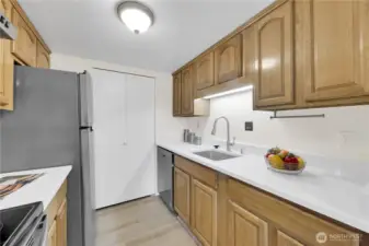 Buyer bonus offered in the amount of $2,600. Enjoy light-filled living with beautiful Lake Washington views in this thoughtfully updated 2-bedroom, 1-bath condo, ideally located just minutes from Juanita Beach, Juanita Village, and downtown Kirkland. The open living and dining area features a cozy wood-burning fireplace and large windows that capture lake and territorial views, creating a warm and inviting space to relax or entertain. The updated kitchen offers modern countertops and newer stainless-steel appliances, combining style and functionality. Updated luxury vinyl plank flooring and fresh contemporary finishes throughout enhance the home’s clean, move-in-ready feel. Step outside to your private patio with additional storage—perfect for enjoying peaceful mornings or evening sunsets. The spacious primary bedroom includes a large walk-in closet, complemented by a second bedroom ideal for guests, a home office, or investment flexibility. In-unit washer and dryer add everyday convenience. One assigned parking space plus ample guest parking included. Commuters will appreciate easy access to I-405, Microsoft, Google, and major Eastside employers, while enjoying the relaxed lifestyle Kirkland is known for. Whether you’re seeking a primary residence or a smart investment, this home offers comfort, location, and views—all in one exceptional package.