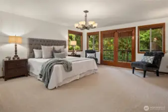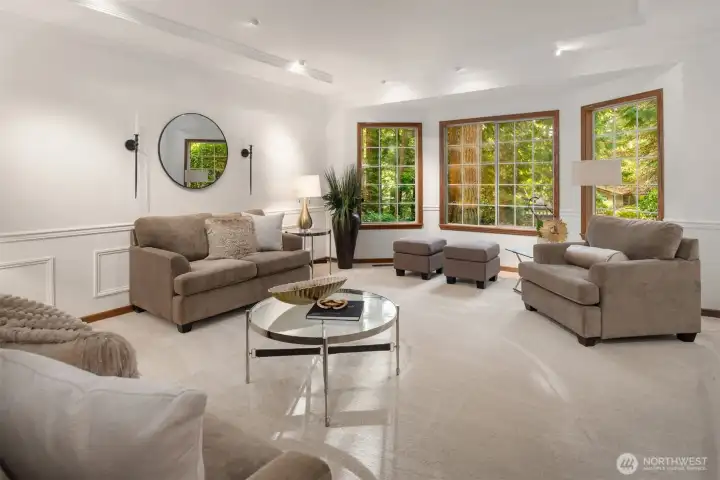 Exceptional residence within the gated community of Sahalee Estates, just steps from the fairways of Sahalee Country Club. Offering 3,415 SQ FT of living space, this 4 BR,2.75-bath home blends warmth & timeless character. A welcoming main-level entry with soaring ceilings & detailed wainscoting, setting the tone for classic elegance. Formal living room, illuminated by expansive windows, invites gatherings, dining room provides a refined setting. The center of the home, the kitchen features rich cabinetry, granite countertops, SS appliances, & gas cooktop, with picturesque golf course views. Beyond glass doors inspired by Frank Lloyd Wright, the cozy family room offers a fireplace & built-ins, ideal for everyday living. A spacious bonus room w/fireplace & wall-length bookcase provides flexibility as a media/private retreat. Upstairs, double French doors reveal the expansive primary suite, complete with a balcony overlooking the course, a generous walk-in closet, & a five-piece ensuite dual vanities & separate shower. An adjoining home office or fourth bedroom. Three additional bedrooms and a full guest bath offer ample space. Outside, a new deck and mature landscaping along the 3 South fairway create a private retreat. With a three-car garage and proximity to Metropolitan Market, Trader Joe’s, Costco, dining, entertainment, downtown Redmond, Highway 520, and Microsoft, all within the Lake Washington School District, this Sahalee home is truly exceptional.