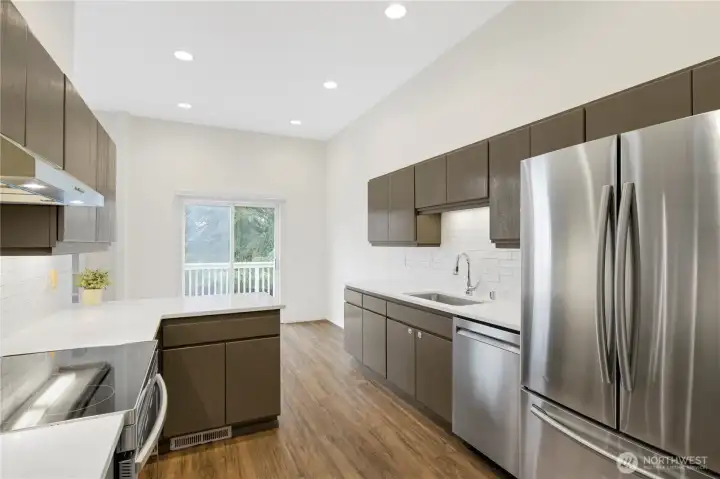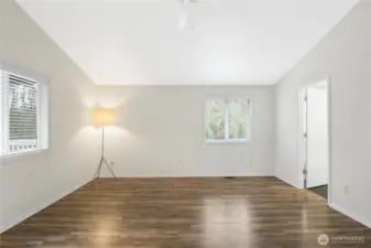 This amazing single level home is Camas has a spacious layout that provides ample room throughout, complemented by an abundance of natural light that pours in through the large windows. Gleaming hard surface flooring extends across the main living areas, adding warmth and elegance. The recently updated kitchen features a wealth of cabinetry for storage, along with modern appliances, new quartz counter tops and backspash that create a functional and well-equipped cooking space. Ample counter space and bright lighting further enhance the utility of this area. An adjacent dining space provides a dedicated area for meals and entertaining. The primary bedroom features a spacious design, offering a comfortable retreat. The en-suite freshly updated bathroom provides a spa-like experience with a bright and airy atmosphere. The two additional bedrooms are well-proportioned, offering flexible options for use. Stepping outside, the home is situated on a sizable lot with a spacious backyard that includes a detached shed for additional storage. The well-maintained landscaping and lush greenery create a peaceful, wooded setting, providing a private oasis. A spacious deck offers an inviting space for outdoor relaxation and entertaining. Throughout the home, updates have been made, including new quartz countertops, updated bathrooms, and a freshly painted interior, ensuring a move-in ready condition. The vaulted ceilings and skylights add to the bright and airy ambiance, while the cul-de-sa