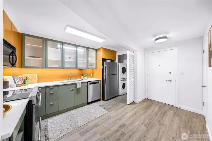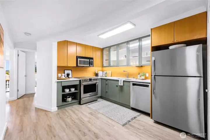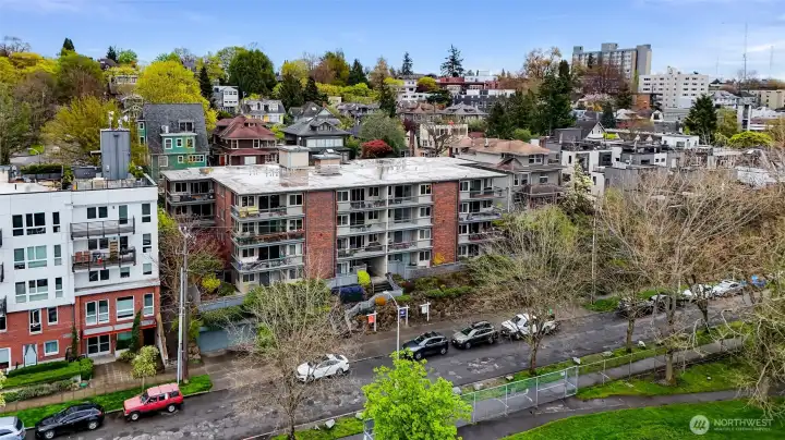 Welcome to this beautifully updated 2-bedroom, 1-bath condo in the heart of North Capitol Hill—where peaceful, tree-lined living meets unbeatable urban convenience. Perched in a prime, quiet location just moments from Volunteer Park and vibrant Broadway, this home offers the best of Seattle right outside your door. Inside, a light-filled, open layout showcases west-facing windows with serene territorial views and seasonal greenery. The spacious living area flows seamlessly to a private deck—perfect for enjoying evening sunsets or entertaining guests. The thoughtfully designed kitchen features stainless steel appliances, granite countertops, and modern finishes, while the fully renovated bathroom shines with designer lighting and fixtures. The large primary bedroom offers generous closet space, complemented by a versatile second bedroom or den—ideal for guests, a home office, or creative space. An in-unit washer and dryer add everyday convenience. Set in a well-maintained, pet-friendly building with no rental cap, this home also includes dedicated parking. With easy access to Light Rail, major freeways, and all the dining, coffee, and culture Capitol Hill is known for, this is city living at its finest. Don’t miss this rare opportunity to own a tranquil retreat in one of Seattle’s most sought-after neighborhoods.