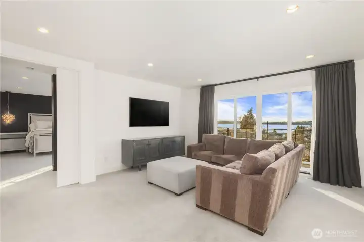 Timeless elegance meets bold design in this contemporary retreat, commanding attention with striking aesthetics and sweeping views. Set in desirable Houghton, just steps from Met Market & Lakeview Elementary. Rich black hardwoods anchor the main level, featuring a sleek chef’s kitchen with moody cabinetry, waterfall quartz island, & Thermador appliance suite with steam oven. Entertain in the expansive great room with linear gas fireplace & high-end audio system that flows to a heated view patio & turf yard. A dining room perfect for hosting, complemented by a guest suite, 3/4 bath, & private office. Upstairs find 3 en-suites including a luxurious primary with heated floors, dual shower, & absolutely giant closet. Access to a large view deck from primary & bonus room. Above it all, the rooftop deck offers stunning views of Lake Washington & Seattle skyline. Oversized 2 car garage wired for EV charging, elevator, hydronic heated floors, backup generator & fully motorized shades elevate everyday living in this exceptional home.