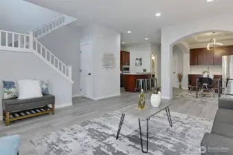 Immaculate craftsman style home in convenient Renton Highlands beckons. This move-in-ready 4Br/2.5Ba offers a spacious primary suite with 5-piece bath, dual vanity and walk-in closet. Recently remodeled open-concept kitchen with generous granite counters and extra cabinets, gas cooking range/oven, stainless steel appliances include brand new refrigerator. 2-car garage off back alley and additional driveway parking. Home features efficient gas force-air furnace and hot water heater, Central AC, automatic sprinkler system, LVP flooring throughout, trendy lighting fixtures, custom blinds and more. Move in, unpack, and enjoy!