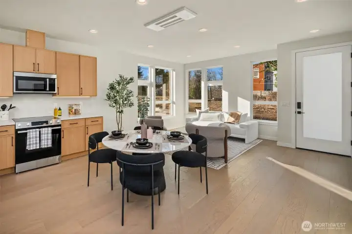 LIMITED TIME 3.99% PROMO INTEREST RATE! Introducing a beautifully crafted new home in West Seattle’s Highland Park, set on a quiet, tucked-away street for added privacy. Inside, you’ll find wall-to-wall engineered hardwoods, sleek quartz surfaces. with full height backsplash, and a high end Bosch and Liebherr appliance suite anchoring the kitchen. Comfort meets efficiency with advanced heating and cooling, while the primary bath delivers a spa-like feel with heated floors and refined lighting details, including LED under-cabinet and niche illumination. Generous storage solutions are integrated throughout the home for practical living without sacrificing design. Modern construction, thoughtful finishes, and a peaceful location make this one stand out from the typical new build. For a limited time, buyers can secure a 3.99% promotional interest rate when using the builder’s preferred lender program.