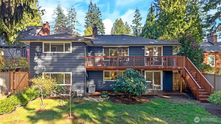 Mid-Century Masterpiece in Broadview — Fully Reimagined This stunning 5-bedroom, 2.25-bath home has been transformed top to bottom while preserving its timeless mid-century character. With 2,760 sq ft of beautifully finished living space across two versatile levels, the extensive updates speak for themselves: complete kitchen and bathroom remodels, new doors and windows throughout, new sewer line from house to street, new gutters, fresh basement carpet, and a brand-new washer and dryer. No deferred maintenance — just move in and live. The main level features gleaming original hardwood floors, a light-filled living room with fireplace, and a dining room that flows to a west-facing deck with peek views of the Olympics and Puget Sound. The fully finished lower level delivers serious bonus space — a large family room with second fireplace, a private fifth bedroom with ¾ bath, dedicated laundry, and walkout access to a sunny, level, partially fenced backyard with patio and outbuildings. The location is unbeatable. Minutes to Carkeek Park's trails and waterfront, restaurants, coffee shops, and boutiques, with direct bus routes connecting you to the entire city. The attached 2-car garage and nearly 8,200 sq ft lot complete an already exceptional package. Homes this well-updated, in a neighborhood this strong, rarely come available. Come see it in person — you'll understand immediately.