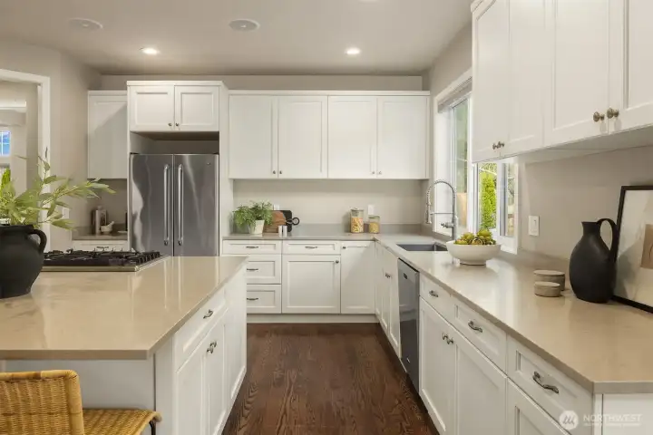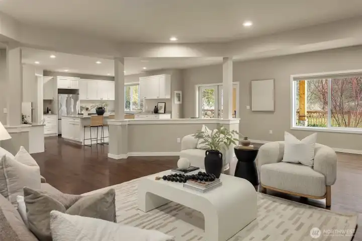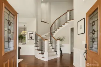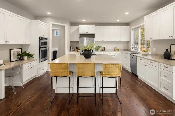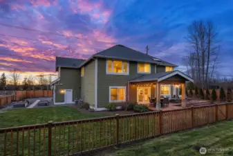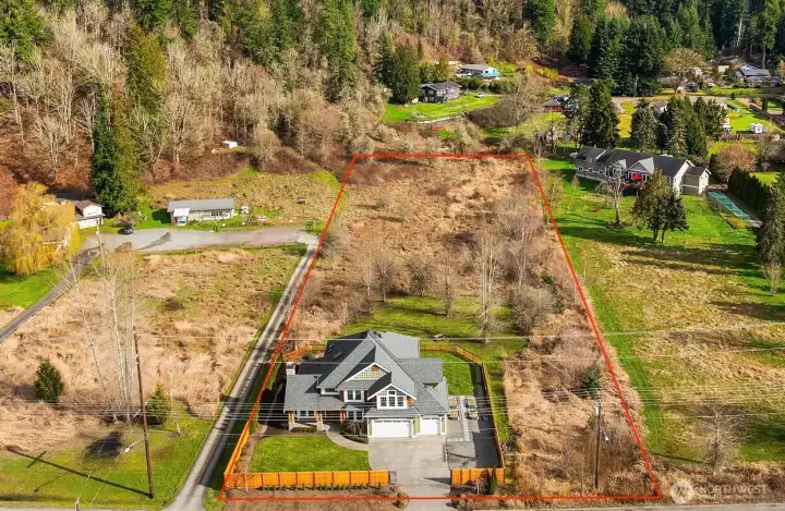 This custom-built private estate on 2.4 acres gives you space to breathe without sacrificing convenience. With 3,910 SqFt, 4 beds, & 4 baths (2 full, 2 3/4, 1 half), the layout was designed for real life & effortless entertaining. High ceilings, granite counters, stainless steel appliances, & beautiful hardwoods offer a luxurious life style, while the oversized island anchors a kitchen that opens to the family room with fireplace & wet bar. It’s the open concept everyone wants, flowing out to the large deck & pergola for easy indoor-outdoor living year-round. Upstairs, the primary suite feels like a true retreat with a sitting area, walk-in closet, & remodeled bath with tile overlooking the landscaped yard. Downstairs, the office includes a 3/4 bath & can easily convert into a guest suite for out-of-town visitors or multi-generational living. A circular staircase adds warmth & architectural character. Sunlight fills the home from sunrise to sunset. Summer mornings on the deck are hard to beat, & in August & September you’ll be picking fresh blueberries from your own yard. Raised garden beds with drip irrigation keep everything thriving. Recent upgrades include a motorized driveway gate, new carpet, Trex deck, French drains, planter boxes with irrigation system, & a fully enclosed cedar fence. Private & peaceful, yet close to 520 as well as Evans Creek Trail, Perrigo Park, & Arthur Johnson Park. A rare opportunity to enjoy acreage, privacy, and convenience in one property.