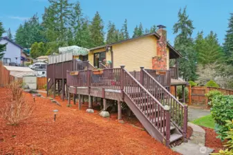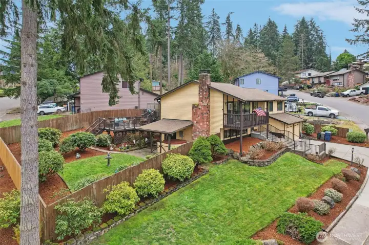 Located in the highly sought-after Marine Hills neighborhood, this versatile two-story home is ideal for multigenerational living. The lower level features a full kitchen, living room, bedroom, and ¾ bath—perfect for extended guests, or flexible living options. The main level offers three additional bedrooms and two bathrooms, complemented by LVP flooring throughout the living room, hallway, and kitchen. Situated on a beautiful corner lot, the home boasts a level, fully fenced yard, three decks, a patio, & a hot tub—ideal for both entertaining and relaxing. The large covered front deck allows for year-round enjoyment. This home comes with a generator all hooked up and ready to live comfortably during any power outage & sump pump.