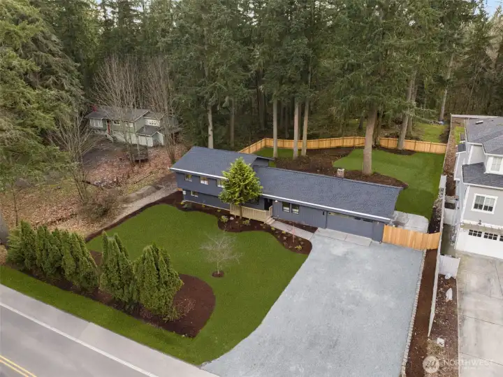 Exquisitely remodeled by Linmak Construction, this beautifully updated Woodinville home blends timeless style with modern comfort. Thoughtfully reimagined throughout, the residence showcases quality craftsmanship, refined finishes, and a functional layout designed for both everyday living and elevated entertaining plus a brand new roof. The light-filled main level features an inviting living room anchored by a statement fireplace and expansive windows that bring in natural light. A dedicated formal dining room provides an elegant setting for gatherings and special occasions. At the heart of the home, the designer kitchen impresses with quartz countertops, stainless steel appliances, updated cabinetry, and generous prep space, flowing seamlessly to the dining area and backyard deck for effortless indoor-outdoor living. Upstairs, the private bedroom level includes a serene primary suite along with additional well-appointed bedrooms and beautifully updated bathrooms featuring modern vanities and sophisticated tilework. Flexible lower-level room ideal as a home office, guest space, or optional 5th bedroom, plus an additional bath. 2-car attached garage plus RV parking. Outdoors, enjoy a fully fenced yard with freshly hydroseeded lawn and mature trees providing privacy and space to relax. Ideally located near Woodinville Wine Country, parks, trails, shopping, short walking distance to top rated Leota Middle School, and convenient commuter routes to Redmond & Bellevue.