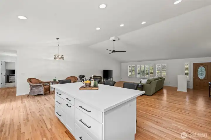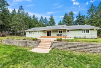 Now offering an interest rate buy-down! Welcome home to space, privacy, and effortless single-level living on 5 beautiful acres in Gig Harbor. This refreshed 4-bedroom rambler offers the rare combination of comfort, style, and room to grow.Inside, newly refinished oak floors with a durable BONA finish and plantation shutters create warmth and timeless appeal. Updated lighting throughout adds a clean, modern touch. The new heat pump will keep you comfortable year round. The kitchen is both inviting and functional, featuring quartz countertops, tall cabinetry, Bosch refrigerator and dishwasher, GE Profile range and microwave with sync, and a Kohler faucet, ideal for everyday living and easy entertaining.The spacious primary suite feels like a retreat, complete with a teak vanity, quartz counters, and a spa-inspired shower with quartz-lined bench and shelving, and custom frameless glass enclosure. The home also features high speed internet, making working from home a breeze. Five level, usable acres provide privacy and flexibility for gardens, animals, gatherings, or future outbuildings. An adjacent 5-acre parcel is available to add, offering the opportunity to expand your estate, enhance privacy, or invest in future possibilities. A rare chance to enjoy easy living just minutes from all that Gig Harbor has to offer.