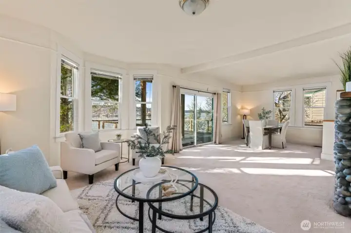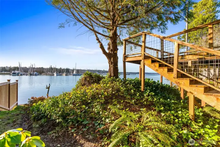Discover the ultimate Pacific Northwest lifestyle with this rare, low-bank waterfront opportunity. Boasting 65 feet of Budd Inlet saltwater frontage with a solid concrete bulkhead, the grounds feature a gentle grassy slope that leads right down to a waterside fire pit. The property offers excellent curb appeal and plenty of parking, and includes a one-car detached garage, a covered carport, and plenty of off-street parking. Inside, the roomy main floor layout is designed to maximize the spectacular setting. Both the living and dining rooms showcase fantastic views of the water, Swantown Marina, and the city skyline. The living room features a real rock gas fireplace and a sliding glass door that opens directly onto your large deck overlooking the water. Upstairs, the spacious primary suite boasts those same incredible bay and city views, complete with dual walk-in closets and a private view balcony. A partially finished basement provides excellent bonus space to suit your needs.This special property is a true blank canvas just waiting for your modern updates, backed by tremendous neighboring price support. Enjoy an unbeatable central location. Stroll or roll to downtown Olympia or Squaxin Park, with schools, the hospital, and freeway access just minutes away. Bring your vision and make this waterfront dream your own!