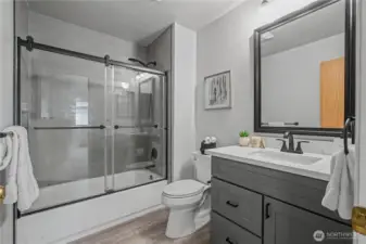 One of the best locations in Dupont! Experience the perfect balance of comfort and sophistication in a home that not only meets your needs but elevates your lifestyle. Every room tells a story of thoughtful design and meticulous care, ensuring you feel at home from the moment you arrive. The large, open living room greets you as you enter. The spacious gourmet kitchen features quartz countertops and top-of-the-line appliances awaiting your culinary creations. Enjoy your coffee in the extra dining space as you look out to the back patio and forested greenbelt. Upstairs, the primary suite offers a private, spacious retreat with a beautifully updated bathroom with a luxurious walk-in tiled shower and a huge closet suite. The 3 additional bedrooms provide ample space for family, guests, or a home office. The large bonus area provides opportunity for entertainment and can be converted to a 5th bedroom. There is an abundance of closet space in each bedroom and a full walk-in closet in the bonus room. Create your perfect backyard oasis with room for gardens and entertaining, and plenty of summer shade. Complete the fence enclosure to provide a secure area for pets and play. Walk to school, the nearby park, or along the network of trails. Don’t miss the opportunity to make this captivating residence your own. Schedule a private showing today and begin your next chapter in this exceptional home. Pride of ownership shows, with Home Warranty included.