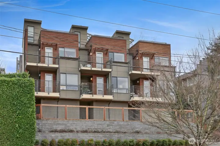 The kitchen features stainless appliances, gas cooking, Quartz counters, a stylish vent hood and blackboard wall.