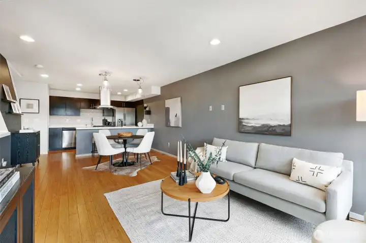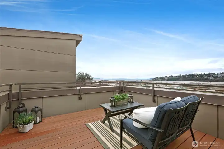 Views of Elliott Bay from three levels in this contemporary Queen Anne townhome. Delivering a huge value for the price point, this home stands out from the crowd. An enviable location puts you just blocks from Whole Foods, Petco, and a variety of other retail and dining options. Nearby bus routes to UW and downtown Seattle make commuting a breeze. Well-maintained and move-in ready, the home features bamboo flooring and new carpet, an open living area on the main floor and two upper-level bedrooms. West-facing with great natural light; there are three view decks where the mountains & sound will catch your eye. The attached garage is a luxury in today's market, providing secure parking and storage. The space, condition and location make this home an excellent choice as a home and investment in your future.