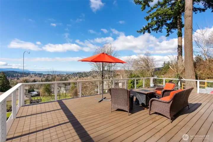 Unobstructed views over Bellingham Bay, easy access to the Lake Padden Trail systems, historic Fairhaven, and convenient I-5 access for commuting…welcome to 3605 Cowgill Ave. This recently updated 1,815 sq ft home sits on an oversized lot offering exceptional privacy or future build potential (buyer to verify). Thoughtfully remodeled on sought-after Samish Hill, the home features an open-concept layout ideal for cooking and entertaining, with oak flooring throughout the main-level dining room, primary bedroom, and kitchen. Maple-wrapped beams frame a chef’s dream kitchen with quartz countertops, an Italian-made ILVE double oven, soft-close custom cabinetry, and spalted maple floating shelves. Main bath offers radiant floor heat, and a floor to ceiling sliding door in the primary bedroom lets you enjoy sunrise views from the comfort of your bed. Sliders from the primary and dining room open to an oversized deck leading to a fire pit area, low-maintenance turf, covered seating area, and flat backyard. Mature apple and Italian plum trees border the driveway. Additional highlights include TDG built-in home audio system, new washer/dryer, two-car garage with storage, gas fireplace, two-head mini-split heat pump, tankless water heater, and recently insulated attic. Thoughtfully updated as the sellers’ forever home… Please see supplements for full home feature list and additional info on site build options.
